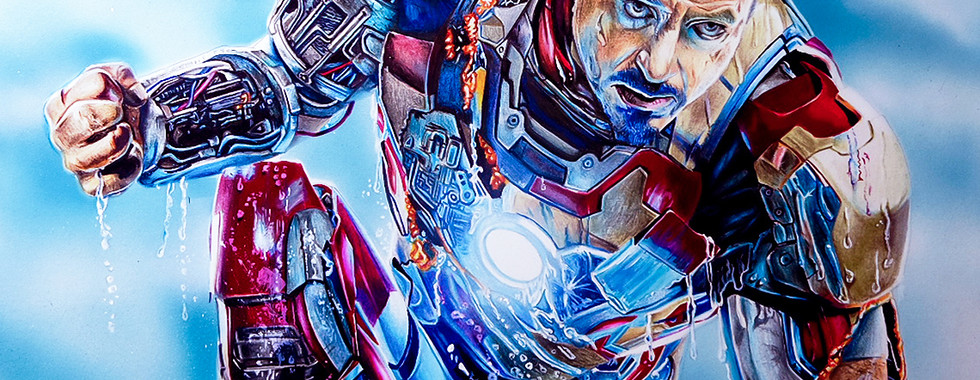 Drawing Iron Man from Marvel Comics using colored pencil, color marker pen & poster color - colored pencil (caran d'ache) / Kuretake Brush Pens / Opaque createx airbrush colors /White marker Pen, Sketchbook A3 Artist Pad with Bulky Artist Paper 130 GSM.